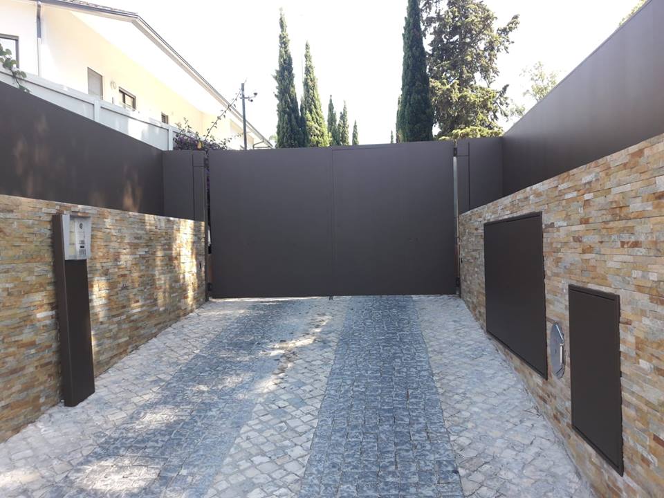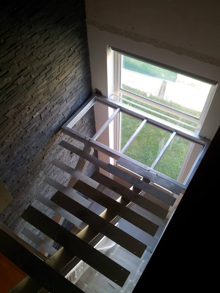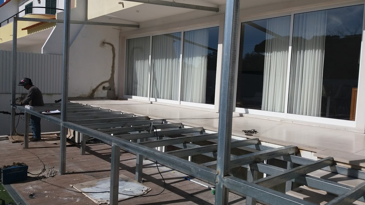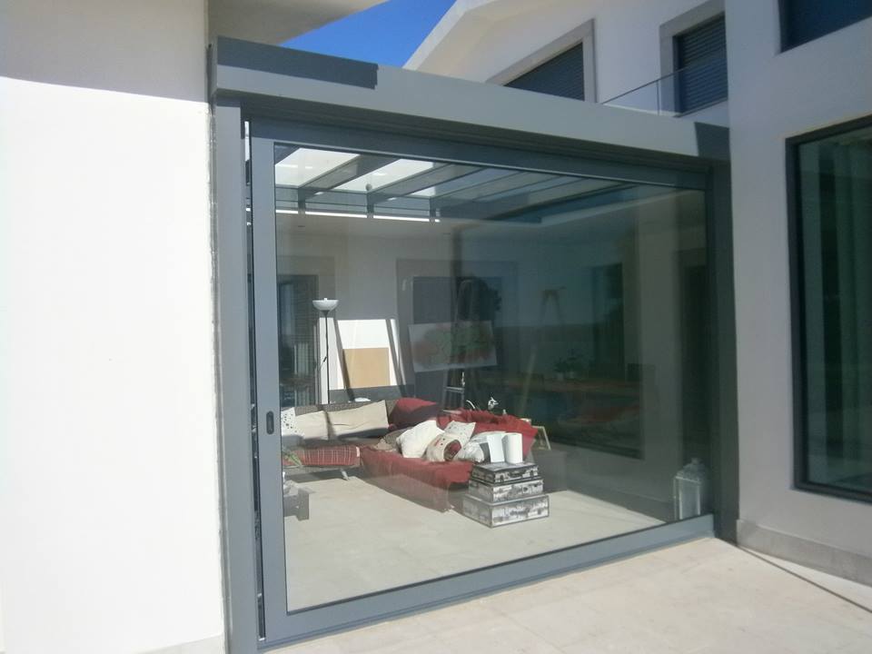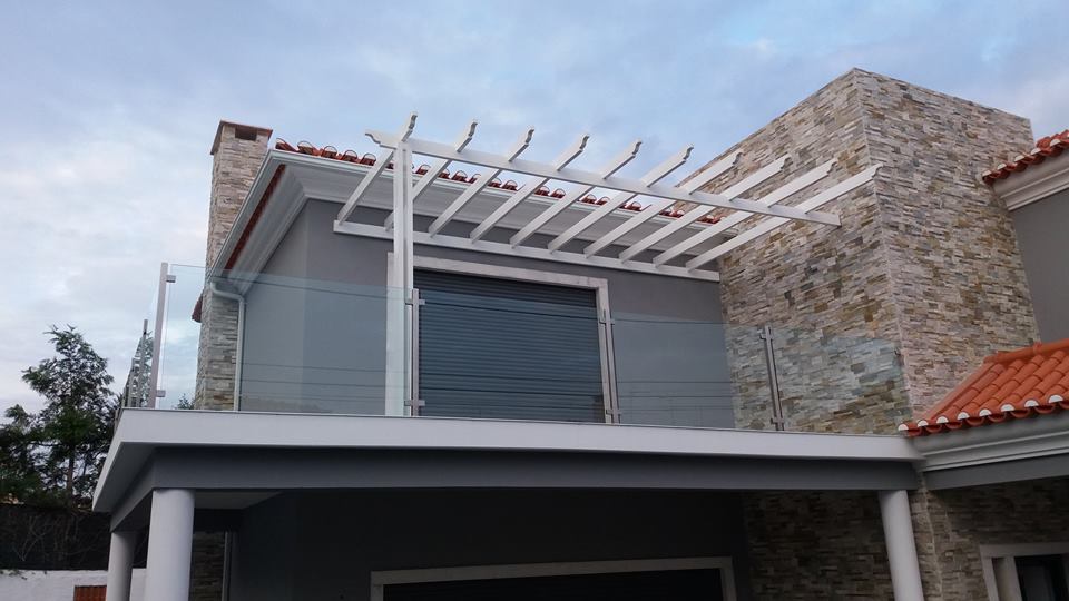 Cobertura em alumínio na serie de FACHADA no RAL 7011 com vidro laminado 5+5